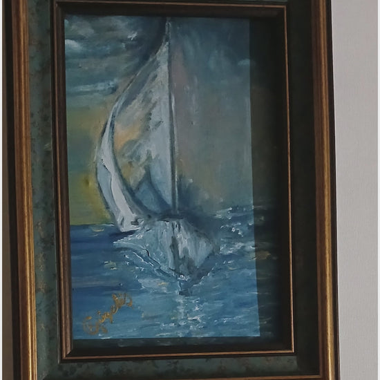 Bu eser, KGzls’in deniz ve özgürlük temasını lirik bir üslupla yorumladığı yağlıboya çalışmadır. Yelkenlinin denizdeki süzülüşü, dalgaların ritmiyle birleşerek tabloya şiirsel bir atmosfer kazandırır.